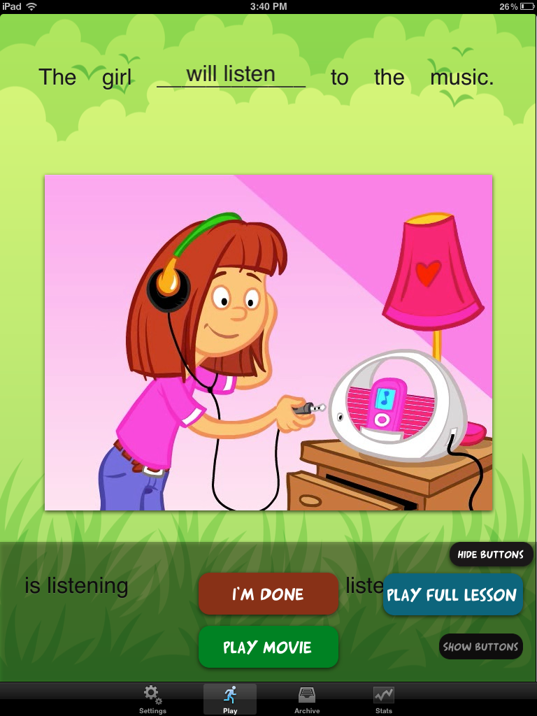 I am currently attempting (and I mean attempting) to teach the concept of tenses to a couple of my students. So, when I was approached by the President of the Mobile-Education Store, to review their newest release Tense Builder, I couldn’t help but accept. When I saw all it could do, I nearly wept for joy.