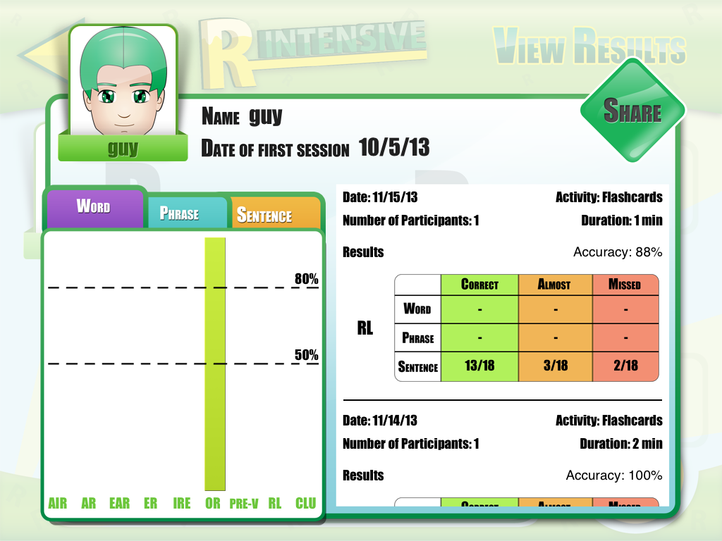 This app really does all the work for me. I pick the target sound…the app provides the words, phrases, sentences, homework…AND…it keeps data!